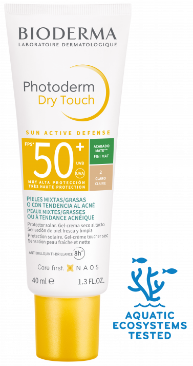 protector solar de toque seco para piel mixta a grasa que matifica y controla el brillo por más de 8 horas, reduciendo la aparición de imperfecciones.