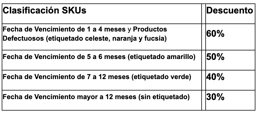 El descuento aplicado compensa la proximidad de la Fecha de Vencimiento, NO la calidad o seguridad de uso del producto dentro del plazo del PAO.